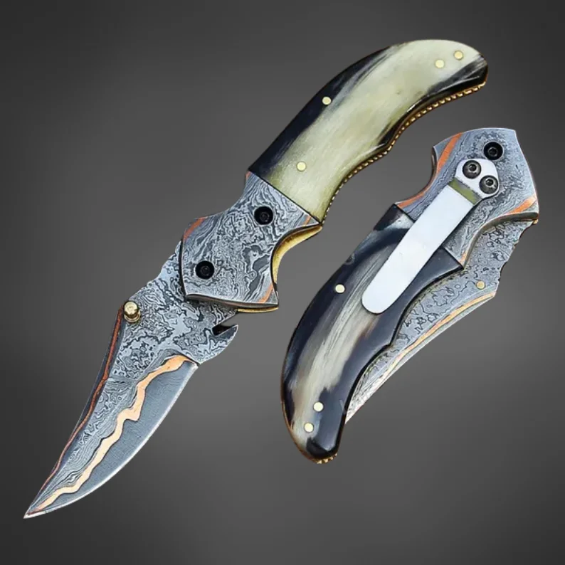 - 🐏 Ram Horn Handle: Made from natural ram horn, each handle boasts distinct shades and textures, ensuring every knife is one-of-a-kind.