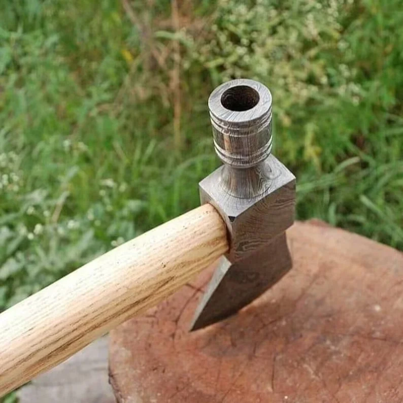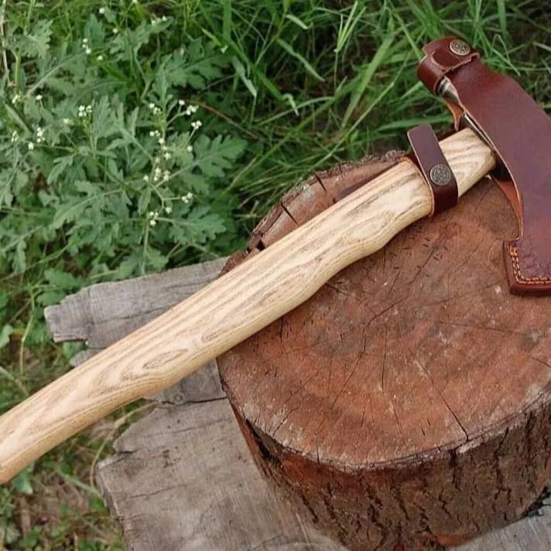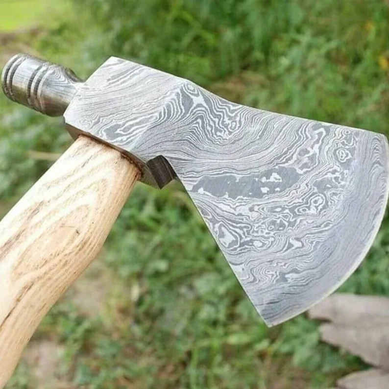 This handmade axe showcases the timeless artistry of Damascus steel, making it a must-have for collectors and history enthusiasts. The combination of natural materials and expert craftsmanship ensures no two pieces are alike. The durable leather sheath provides safe storage and enhances its collectible appeal.